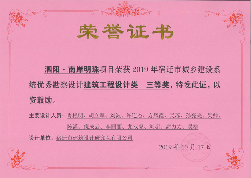 泗陽(yáng).南岸明珠建筑工程設(shè)計(jì)三等獎(jiǎng)